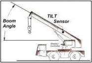 Two factors, which can contribute to 'tip-over' are cab attitude and boom angle. Both of these variables are most easily measured using an inclinometer. For cab attitude, both the pitch and roll axis' (X and Y) will need to be monitored, typically not exceeding a +/-30 degree maximum range. This a near ideal application for the SPECTROTILT™ II Dual Axis Electronic Inclinometer. Where the daily working environment and the packaging are a concern, the SPECTROTILT™ Ratiometric Electronic Inclinometer (single axis) will do the job.The boom angle has the same characteristic effect as it does on a normal crane, whereas fractional changes of a degree can equate to dramatic changes in the actual working load. The relatively long reach of the boom (when extended) compounds this effect, especially at or near level. The normal working range of the boom is 0-90 degrees. This is an excellent application for the SPECTROTILT™ Electronic Inclinometer. The packaging features such as a hermetically sealed sensing element, full ESD and EMI protection, an aluminum housing and fully potted electronics provide superior environmental protection. With the long-term exposure to the elements that a sensor in this type application will have to endure, these features are significant.